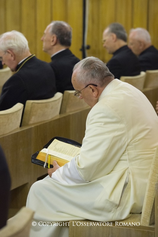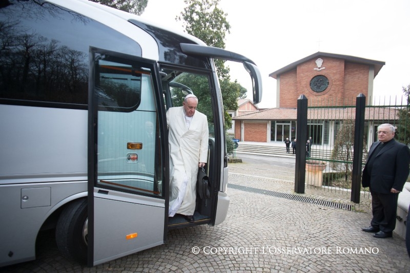 A las 18 del 22 de febrero, I Domingo de Cuaresma, en la Casa Divino Maestro de Ariccia, inician los ejercicios espirituales de la Curia romana en los cuales participa el Papa Francisco.
