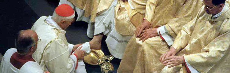 Prima di celebrare l'ultima Pasqua con i discepoli, Gesù lavò loro i piedi. Con un gesto che di regola spettava al servo, volle imprimere nelle menti degli Apostoli il senso di quanto sarebbe accaduto di lì a poco.