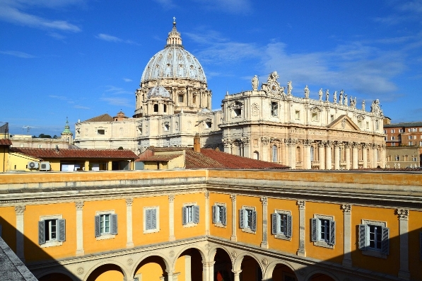 Breve cronistoria Il Palazzo del Sant’Uffizio è un palazzo nel quartiere romano di Borgo e zona extraterritoriale della Santa Sede in Italia. Ospita la sede della Congregazione per la Dottrina della Fede e di altre Istituzioni della Curia romana. Il Palazzo si trova a sud della basilica di San Pietro in Vaticano, adiacente all’entrata del Petriano della Città del Vaticano. Nelle forme attuali, l’edificio deriva dal precedente Palazzo Pucci, risalente al 1514. Ecco una breve cronistoria di questo antico e storico Palazzo: 1514. Per realizzare la sua nuova residenza, il Cardinale Lorenzo Pucci acquista alcune abitazioni della famiglia Gozzadini presso la basilica di San Pietro, tra la chiesa del Camposanto Teutonico, quella di San Salvatore in Terrione e la caserma dei Cavalleggeri, su di un’area ceduta dal principe Costantino di Macedonia. 1524–1525. Nella progettazione della facciata del Palazzo sono incaricati gli architetti Giuliano Leno e Pietro Rosselli, e lo stesso Michelangelo Buonarroti.  1531. Muore il Cardinale Lorenzo Pucci. 1532–1534. L’architetto Antonio da Sangallo il Giovane è incaricato di eseguire alcuni lavori di completamento del Palazzo.