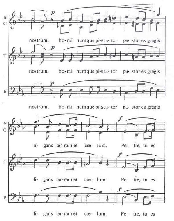 Partitura della riduzione per coro a 4 voci disparidi Alberico Vitalinicon testo originale latino di Mons. Raffaella Lavagna(1950 © Libreria Editrice Vaticana, Città del Vaticano)