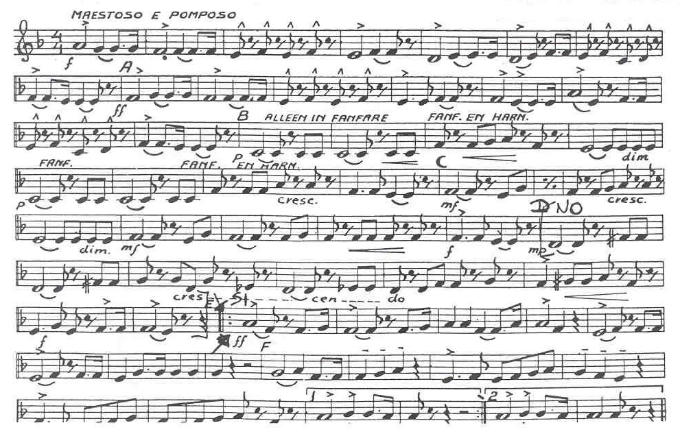 Partitura della trascrizione per fanfarearrangiamento di S.P. van Leeuwen(1950 © Molenaar's Muziekuitgaven voor Harmonie- en Fanfareorkest)