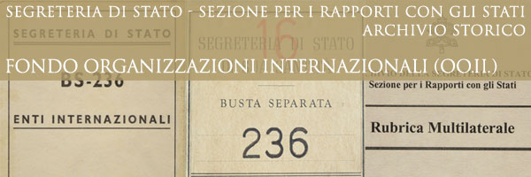 | I primi documenti di questo Fondo (già Rubrica BS 236 Organismi Internazionali, Archivio Internazionale e Rubrica Multilaterale) risalgono alla seconda metà del XIX secolo. Il Fondo “Organizzazioni Internazionali” (inizialmente inserito nell’Archivio della Sezione per gli Affari Generali della Segreteria di Stato) nasce con la raccolta delle carte di carattere internazionale, denominata Busta Separata 236-Organismi internazionali. Il Fondo, collocato separatamente, assunse il nome di “Archivio Internazionale”. Con la Costituzione Apostolica “Pastor Bonus” (1988) e l’intensificarsi dell’attività multilaterale della Santa Sede, dal 1° gennaio del 1991 le competenze sugli enti e i congressi internazionali furono affidate alla Sezione per i Rapporti con gli Stati della Segreteria di Stato, che già conservava altre carte di natura internazionale, archiviate nel Fondo della “Sacra Congregazione degli Affari Ecclesiastici Straordinari”, e successivamente in quello del “Consiglio per gli Affari Pubblici della Chiesa”. Nel 2005 per “l’Archivio Internazionale” si adottò la denominazione “Rubrica Multilaterale”. Ora, in vista della consultazione delle carte da parte degli studiosi (fino al 10 febbraio 1939) è stata precisata in Fondo “Organizzazioni Internazionali”. La parte del Fondo “Organizzazioni Internazionali” attualmente consultabile è composta di 224 Buste d’Archivio, corrispondenti a ca. 22 metri lineari. |