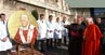 1) Este mosaico pertenece a la misma escuela de los mosaicistas venecianos de San Marcos. En el centro, el Cristo bizantino en actitud de bendecir está rodeado por dos ángeles y por los 24 Ancianos del Apocalipsis. En el registro inferior están los apóstoles Pedro y Pablo, este último parece señalar su tumba 15 metros más abajo. El mosaico fue reformado y retocado varias veces y colocado de nuevo en su lugar en 1853, después del incendio. 2) Esta serie papal reafirma de manera extraordinaria la “supremacía reconocida por los fieles de cualquier lugar a la Iglesia fundada y constituida en Roma por los dos gloriosísimos Apóstoles Pedro y Pablo”, como escribía san Ireneo en el siglo II. Tras el incendio de 1823, Gregorio IX mandó hacer copias de esta serie papal única al mundo que caracteriza a esta basílica. Los medallones antiguos que se salvaron se conservan en el monasterio. |