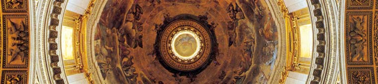 | Bijou artistique d'une rare beauté, qui représente un lieu dans lequel se fond l'art et le sentiment religieux: l'icône de la Salus Populi Romani, où la pieuse tradition voulut qu'elle soit peinte par l'évangéliste Luc, accueille avec son regard maternel ces qui s'adressent à elle. Dans l'an 1605 montait sur le trône pontifical Paul V (1605-1621) à qui on doit la Chapelle de la Vierge, nommée également Borghese ou Paoline, opposée à la Chapelle Sixtine, symétrique dans la plante et dans le schéme architectural. En effet, même si elle est disposée en croix grecque, avec ses secteurs corinthiens et à quatre grands arcs, soutenus par d'imposants piliers, sur lesquels repose la coupole. Elle fut édifiée pour garder l'Image de la Vierge "Salus Populi Romani", sur ordre de Paul V, et d'après le croquist de l'architecte Flaminio Ponzio (1560-1618), entre 1606 et 1612; le sacre eut lieu le 27 janvier 1613, mais l'achèvement des décorations continua encore dans les ans suivants. Celle-ci a coûté à la Chambre Apostolique la somme de 299.261 écus et 61 baïoques. Seulement 25 ans plus jeune que la Sixtine, sa décoration pictorique est libre et impétueuse. Avec ses marbres précieux et assortis aux cadres dorés; avec des anges en bronze (d'une beauté resplendissante) et de stuc (qui se levent avec des ailes vibrantes et sourient), avec son autel majexteux, d'un bleu intense qui fait ressortir son charme et tout ses détails, avec ces monuments grandioses et raffinés, la Borghese offre des signes plus marqués de la prémiere manifestations du Baroque, imprégnée d'une singulière vibration de joie et de vie. Les artistes et les maniéristes les plus célèbres de l'époque ont rivalisé pour l'orner. Le premier modèle de l'autel a été réalisé en bois poirier en 1607 et un an après le fondateur Pompeo Targoni commençait à y travailler pour le terminer en septembre 1612. L' œuvre se présente étincelant grâce au métal doré, forgé dans des formes bien aérées et mouvantes des anges, qui souteniennent le cadre dans lequel est enfermée la Salus Populi Romani, modelés par Camillo Mariani: la richesse des details et la precieusité des contrastes lumineux qui animent les anges de Mariani doivent beaucoup au manierisme de Florence du Sansovino, mais ils réussissent à se traduir même dans un puissant aigu lyrique en mesure d'alléger la forte masse de la structure architecturale. Mariani a également sculpté la statue de St. Jean l'Évangéliste. Sans doute le sculpture décorative la plus intéressante se trouve dans les longes de l'autel majeur de la Chapelle Paoline est le bas-relief qui se trouve sur le frontispice, œuvre de Stefano Maderno et représente le Pape Liberio, qui traça le périmètre de la basilique sur la neige. Les anges qui soutiennent la cartouche situés sur le côté de la tombe sont attribués à Maderno. La cantine de l'autel fut offerte en 1749 par la princesse Agnese Colonna Borghese, dont ses armes sont imprimées dans la même. Giuseppe Cesari, connu comme le Cavalier d'Arpino, a exécuté dans la grande lunette sur l'autel à sa gauche, le fresque qui représente l'apparition de la Vierge et de Saint Jean l'Évangéliste à ST. Gregoire Thaumaturge, et à droite quelques personnes mordues par le serpent de l'héresie et le Temple de Dieu avec une foule de vrais croyants. Le même artiste a peint avec panaches la coupole les grands Prophètes: Isaïe, avec un aspect décharné, blancs les cheveux et la barbe, en robe bleue, manteau rouge et nu pieds; Jérémie au front chauve, la barbe chenue, en robe bleue et manteau jaune qui l'enveloppe et descend jusqu'aux pieds; Ézéchiel d'aspect juvénile, cheveux blonds, imberbe, en veste violette ornée d'un liseré bleu, privée de manches (ce qui le représente les bras nues) un manteau jaune entoure son corps; Daniel jeune assis, les cheveux blonds longs ondoyants, et de carnation blanche, en robe céleste brodée d'or, les manches retournées, petit manteau pourpre. Le même Cavalier d'Arpino a peint, dans l'arc de la tribune de l'autel, les Saints Évêques Ignace et Teophile, Irénée et Cyprian. Notre-Dame de l'Assomption, à l'intérieur de la coupole, est de Ludovico Cardi, appelé le Cigoli. Sur les nuages, Marie la très sainte montante au ciel. La lune sous les pieds de la Mère de Dieu a été peinte par l'auteur exactement comme l'avait révélé le télescope de Galilée qui était l'ami de Cardi. Les Apôtres, certains assis d'autres debout, suivent du regard de triomphe de la Vierge qui tient dans ses mains le sceptre de reine. Devant la Vierge, qui a écrasé le serpent, s'ouvre le Divin, une multitude d'Anges tourne, en rond pour fêter l'événnement. De cette foule se détache un groupe de Chérubins qui se tiennent à l'écart, en guise de nuage, prêts à exécuter un trône avec leurs ailes dorées; un autre groupe souffle dans les trompettes, d'autres chantent et d'autres encore épandent des fleurs. Plus haut on voit une myriades d'ésprits angéliques dont on ne voit que les demis personnages, les bustes ou les têtes. Une petite cupole avec six petites fênetres fonctionnant comme une majesteuse lanterne à la coupole. Au fond est peint un Père Eternel, qui a au tour de lui une couronne de plusieurs rangs de séraphins. Jean Baglione a peint en bas reliefs sur le bas coté de la voûte devant la Chapelle, des Docteurs et Évangélistes; à l'intérieur sur l'arc au-dessus de l'entrée, les figures de Julien l'Apostat, de Lion IV arménien et de Constantin Copronimo; en suivant dans l'ovale dominant l'autel, l'image de ST. Luc. Sur les grands arcs de droite Guido Reni a peint à fresque les Saints Cyrille d'Alexandrie, Idelfonse, Jean Chrysostome et les Saintes Pulchérie, Gertrude et Cunégonde; et sur legrand arc de gauche, St. Héracles, St. Narsès et des puissantes figures de St. Dominique et de St. François. Toujours sur le grand arc de gauche, 